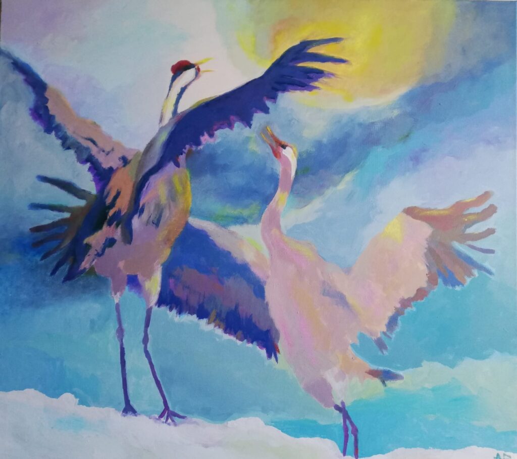 Dzērves dziesma, a/j.t., 90×100, 2025